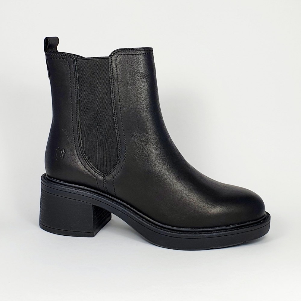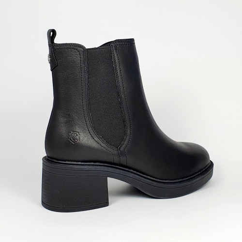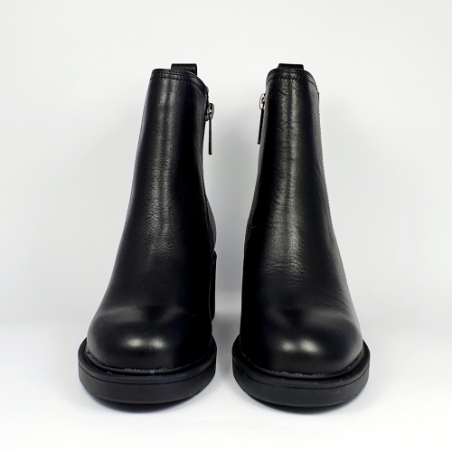 Botín negro modelo 68083 Carmela fabricado en piel muy suave. Ajustable por cremallera con elástico lateral tiene una suela de goma muy cómoda con tacón ideal para combinarlo para cualquier outfit en este invierno