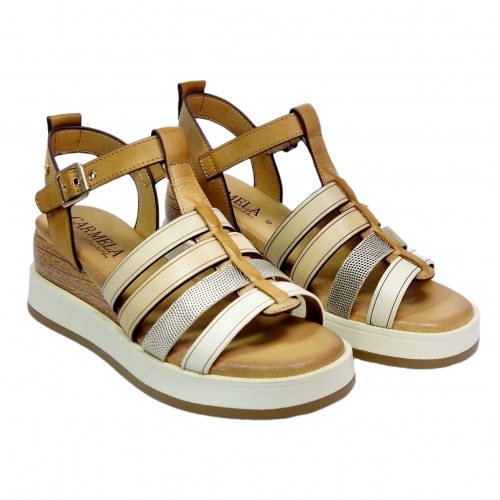 Sandalia plataforma mujer piel carmela camel