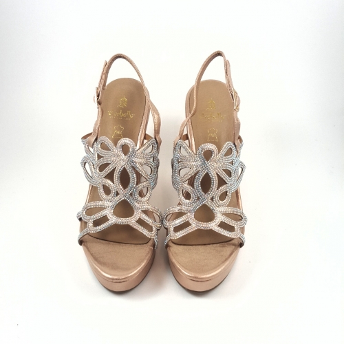 Sandalia modelo 52025 El Caballo de tejido brillante con cuña forrada de 10cm. de altura por 2cm. de plataforma y plantilla de piel. Ideal para ir cómoda en tus momentos mas brillantes