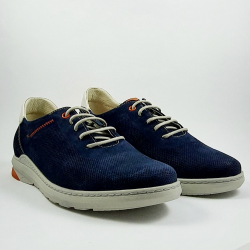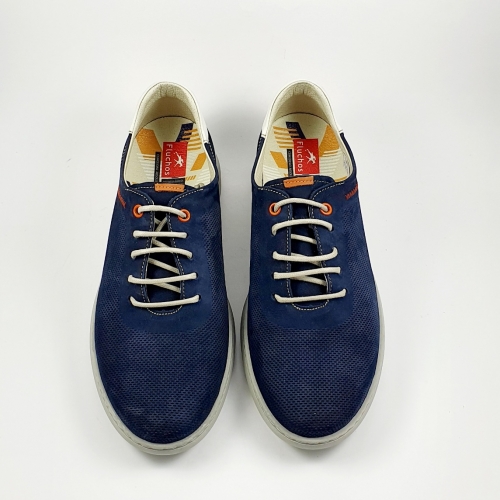 Zapato hombre modelo F1158 Fluchos en nobuck azul de alta calidad. Ajustable con cordones al empeine, tiene una plantilla muy cómoda extraible que junto a su piso muy flexible y novedoso hacen de este modelo tan veraniego y tan casual  un acierto para disfrutar a cualquier hora