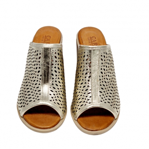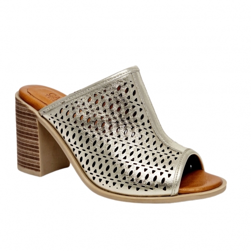 Zueco mujer tacon piel carmela dorado