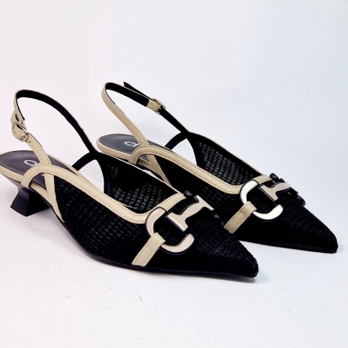 Zapato mujer vestir rafia tacon dibia negro