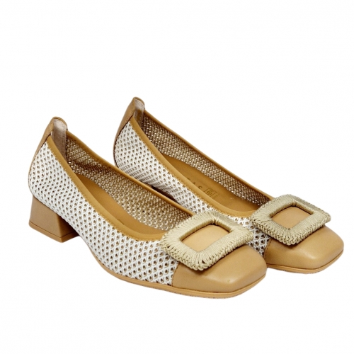 Zapato mujer tacon bajo vestir rejilla hispanitas
